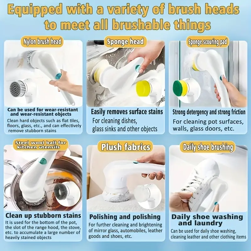7pcs Electric Spin Scrubber, Cordless Handheld Cleaning Brush With 5 Replaceable Brush Heads, USB Rechargeable 360°Power Scrubber Mop For Wall Bathtub
